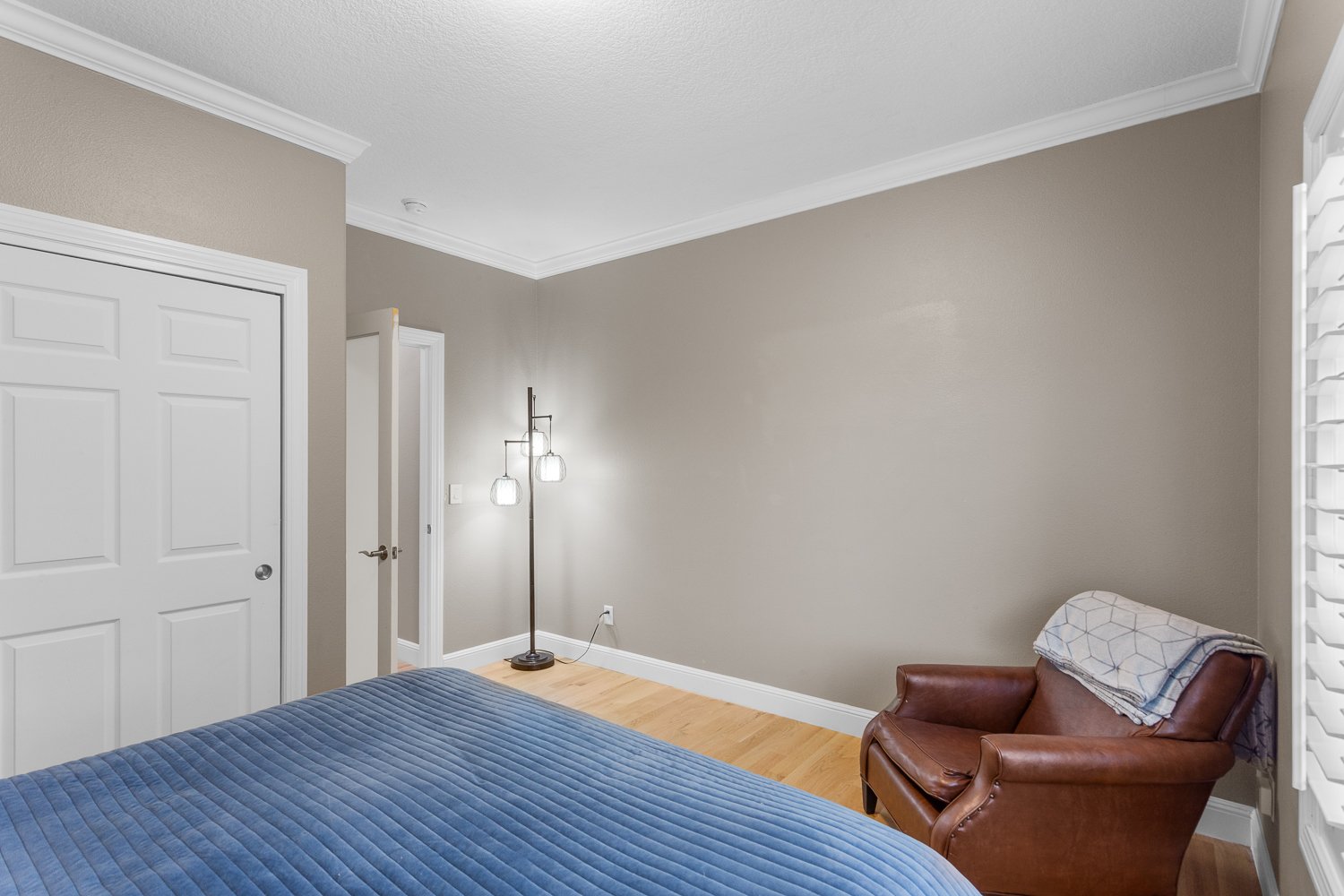 Main-level suite offers a private retreat with fireplace and spa-style bath.