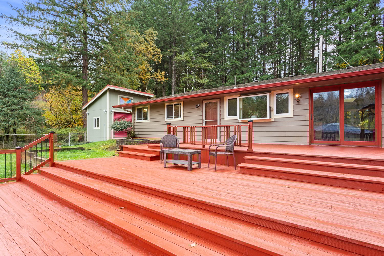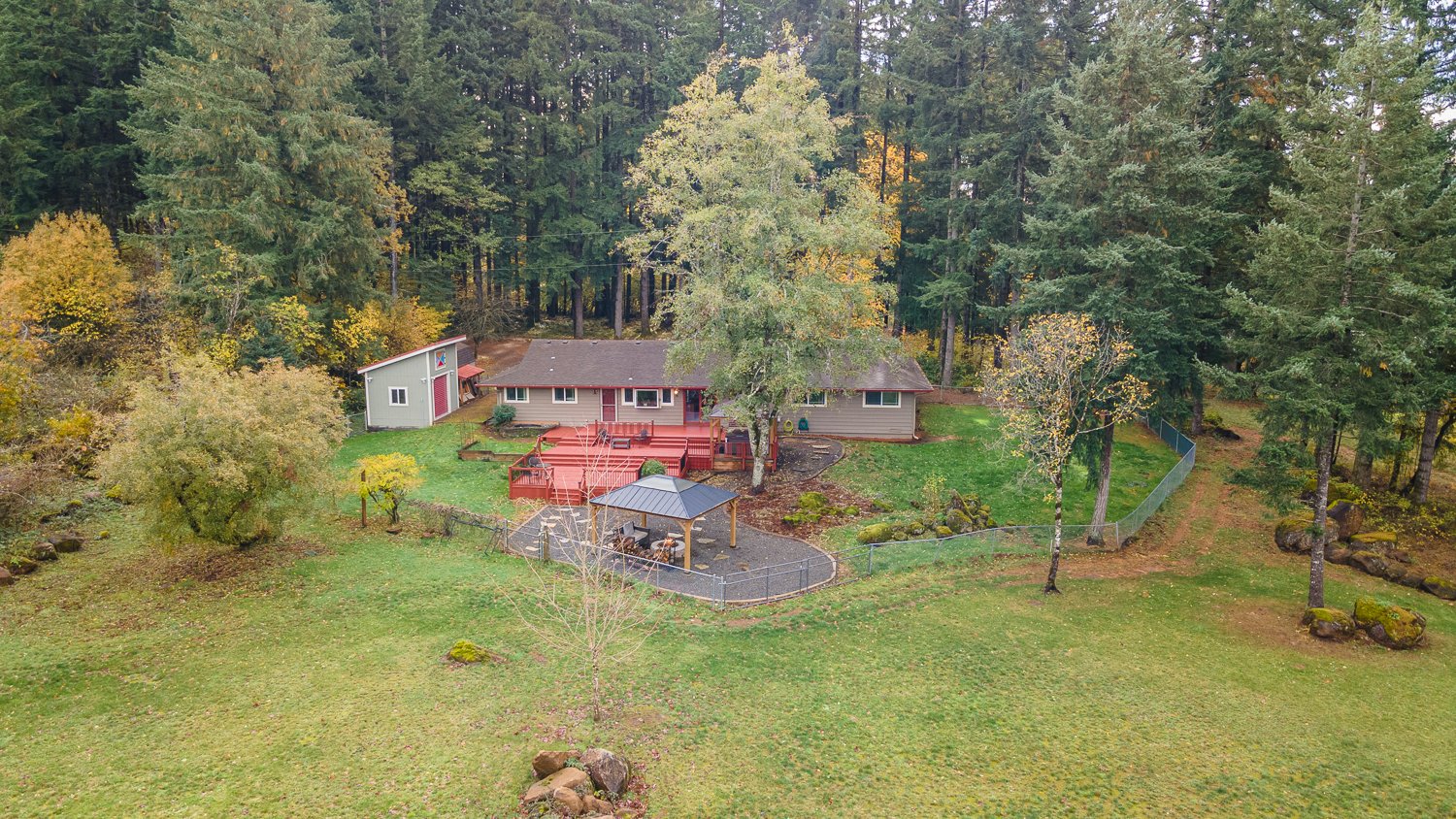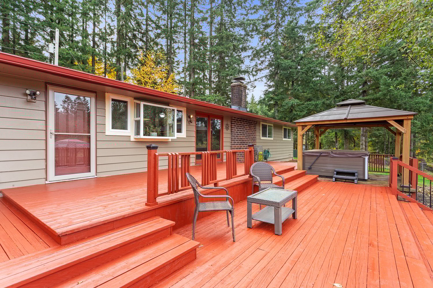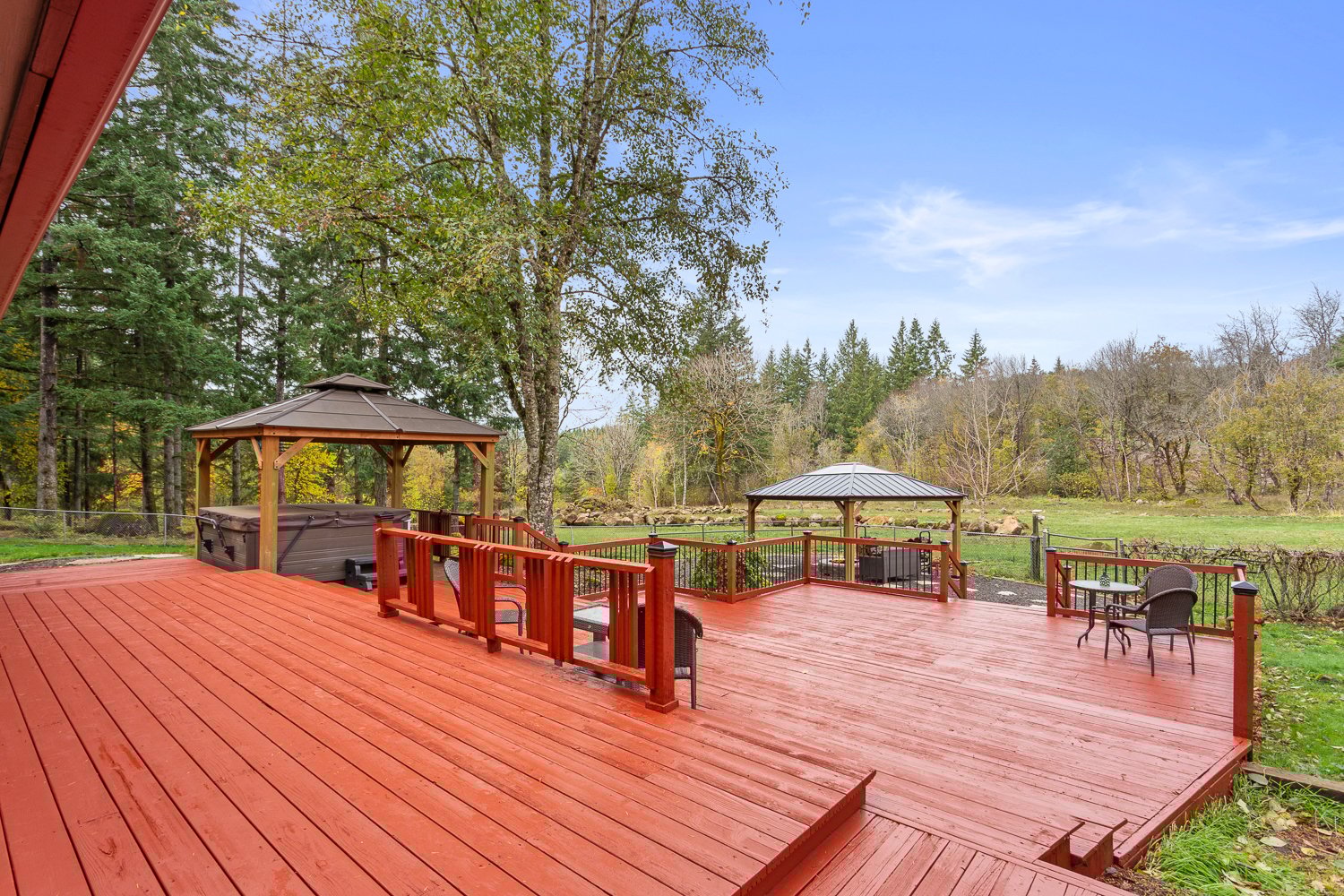 Updated single-level ranch featuring 3 bedrooms, 3 full baths, and over $200K in improvements.Private 2.5-acre retreat in the Camas School District with high-speed Comcast internet. Located at the end of a quiet street, offering wooded privacy while just 10 minutes from Oak Station Food Trucks, Costco, Safeway, Home Depot, Walmart, and more.Open floor plan with vaulted ceilings, refinished oak hardwoods, picture windows, skylights, and pellet stove with floor-to-ceiling brick surround. Gourmet kitchen with granite counters, cherry cabinets, cook’s island, stainless appliances, tile backsplash, and barn door to a large utility room with storage, granite counters, double sink, exterior access, and full bath.Primary suite with double closets and spa-style bath featuring dual sinks, marble counters, porcelain tile, and walk-in shower with bench. Two additional bedrooms plus another full bath. Outdoors: three-tier deck, seasonal creek, saltwater hot tub under covered gazebo, second gazebo with firepit, approx. ½ acre fenced, oversized 2.5-car garage,… Read MoreTuff shed with loft, and 12x16 workshop with 220 power and roll-up door. Room for RV parking or a future barn. Move-in ready privacy and convenience.Read Less
